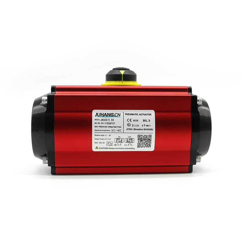 Teline- ja hammaspyörän pneumaattinen toimilaite, joka toimii JHA0075DA, saa puristetun ilmaa, jota ohjaa mäntätelineen suora liike lähtöakselin vaihdevaihteen ohjaamiseksi ja pneumaattisen toimilaitteen kulma -iskulla. Laajasti käytetty palloventtiilissä, perhonen venttiilissä, tulppaventtiilissä ja muussa kulma -venttiilin kytkimessä ja säätössä, voidaan myös levittää muihin kiertäviin tilanteisiin, on ihanteellinen laite teollisuuden putkilinjan automaation ohjaamiseksi.